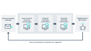 Per scopi di marketing, ti consigliamo di avviare il processo di invito con una lettera di invito (facoltativa), specialmente se non hai ancora registrato un indirizzo email aggiornato per tutti i clienti.